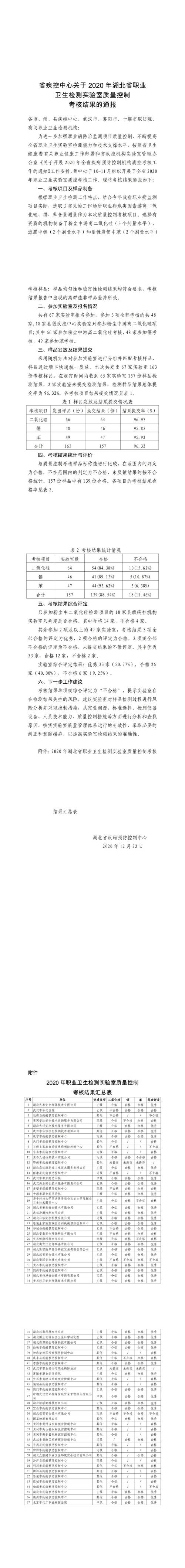 關于湖北公信安全科技有限公司參加2020年度湖北省職業(yè)衛(wèi)生檢測實驗室質量控制考核結果的公告